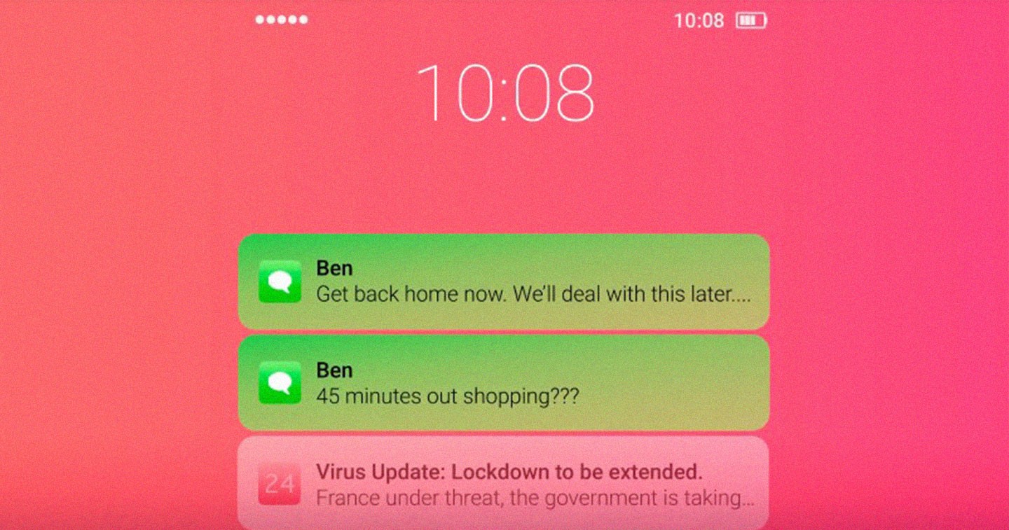 Fear, conflict, harassment, violence… a host of emotions which bear witness to incredible plight, and which are reflected through this short, impactful clip created by the committed agency Marianne Paris (#InOurShoes). This 40s video whisks us off into the phone of a woman who receives notifications about the virus and several messages from her partner while she was out shopping. The clip ends with a claim encouraging victims, as well as witnesses, to speak out.
