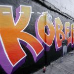 The mural depicts Kobe wearing his two iconic jersey numbers, 8 and 24, shooting crumpled pieces of paper into a trash bin. An optimistic way of showing the moment when we are reminded to be a little better each time the sun rises, just like Kobe. Throughout his career he evolved both as a person and as an athlete, he was always the one you could reliably turn to when the game is on the line.
