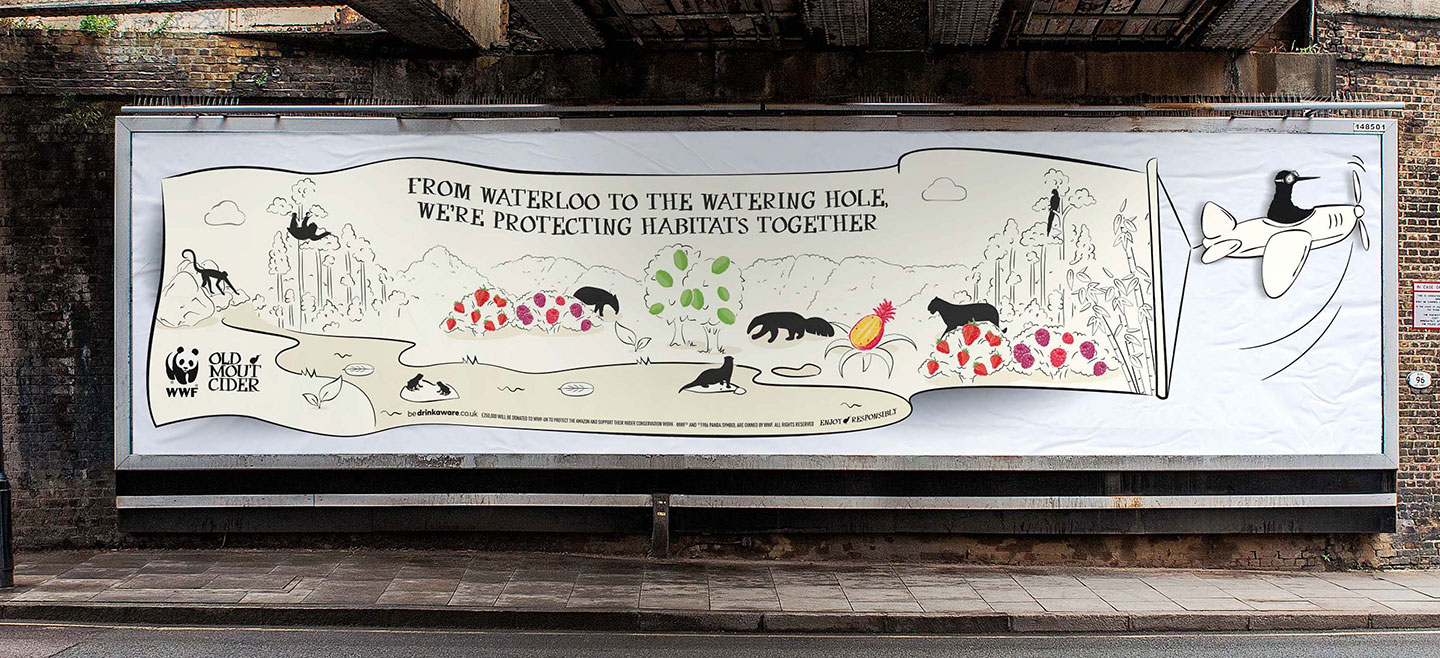 Creative Partner at St Luke’s Julian Vizard said, “Old Mout’s Kiwi has got a lot to say! That’s why this little bird is on a mission to take over Waterloo Station. Letting everyone know about Old Mout’s exotic flavour range and WWF partnership.”