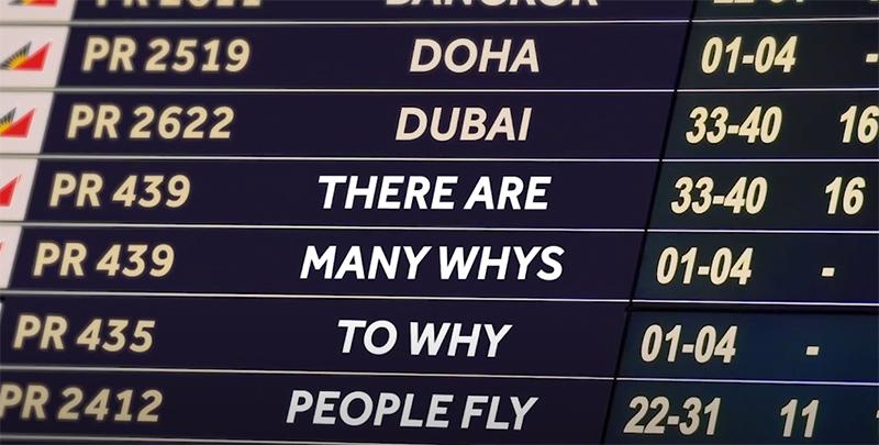 Set to a spoken-word piece, the safety video titled “Why” lists the many reasons people have to fly nowadays, as well as the many actions Philippine Airlines takes to assure the passengers’ safety in flight.