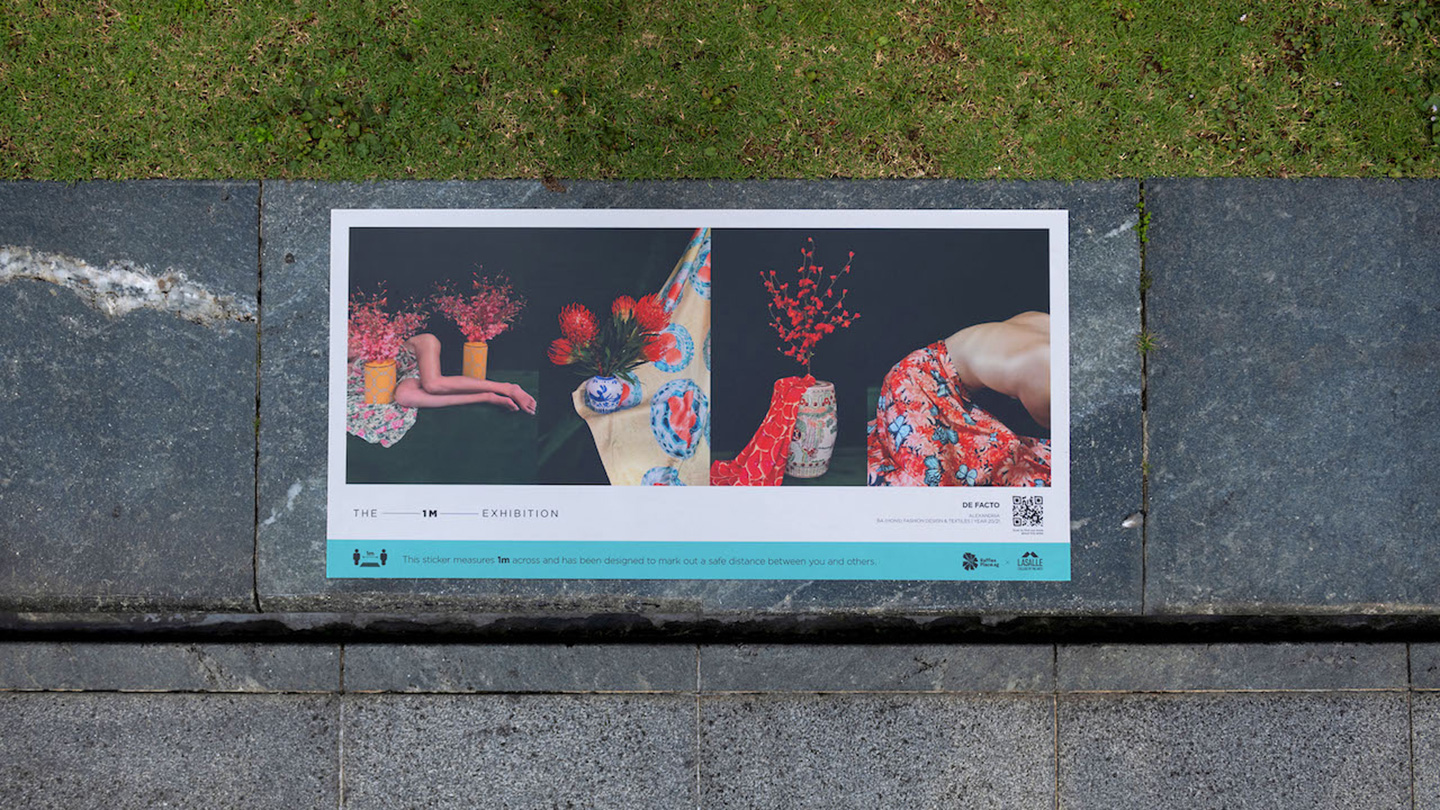 A total of 177 artworks by 105 design graduates at LASALLE, an education institution specializing in the creative arts, are now being exhibited around Raffles Place Park using the unexpected medium of social distancing stickers, reaching around 180,000 people per day. This initiative bridges the gap between the next generation of artists and potential employers.