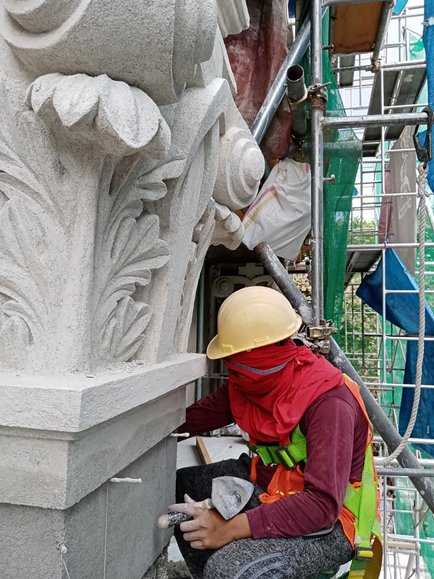 The project employed a total of 16 graduates of Escuela Taller who had already been experienced and exposed to conservation projects similar to this one. These are trained masons and heritage conservation workers of Escuela Taller who have also been involved with ET’s conservation projects including that of Malate Church, Paco Park ossuary, among others.