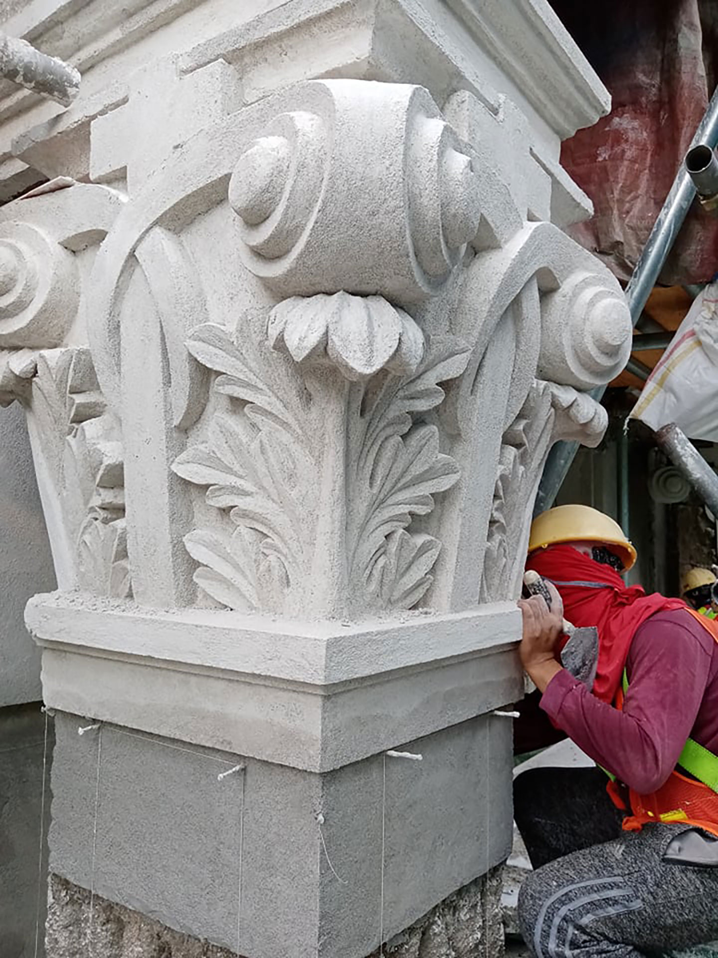 Among the accomplishments made by Escuela Taller’s conservaton team include the removal of destructive vegetation that has crept to the masonry stones for years, the removal of cement plaster that once covered the building, the rehabilitation and replacement of deteriorated and damaged masonry units along with reinstatement of lost details of the facade. Escuela Taller also removed the hazards in the cupola including the preparation of wooden posts and the repair of the wooden dowel atop the right pilaster.