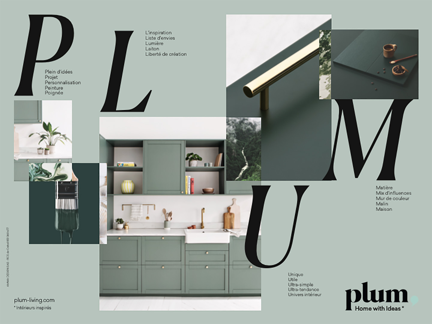 PARIS, FRANCE — In an eye-catching new print, outdoor and digital campaign, Sid Lee Paris and interior design brand PLUM are unveiling a series of cleverly composed visuals that highlight the brand’s inspirational universe. Designed to grow recognition, PLUM’s first brand campaign speaks to a new generation of homeowners and renters who want to go beyond pre-fab. The DIY generation, always WIP, wants to design, create, and imagine. PLUM’s collection of façades and accessories that complement IKEA’s modular furniture, and its vibrant line of wall paint, give spaces a new dimension and personality. More than a brand, PLUM aims to be a partner, a constant source of inspiration for those who want to express their creativity.