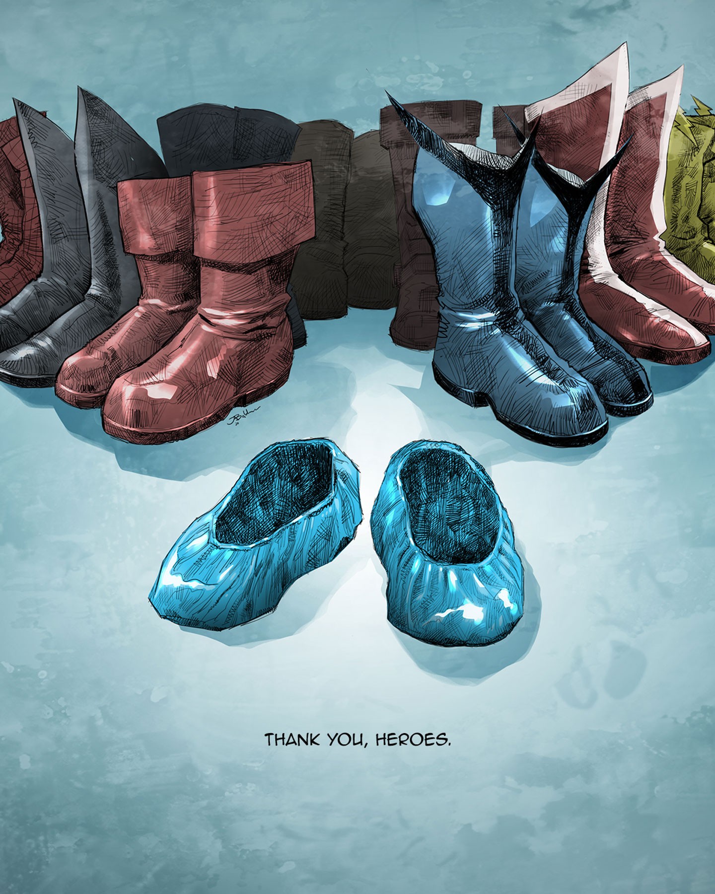 To promote the campaign, internationally-renowned Filipino comic book artists have graciously donated their time and talents to create artwork that paid tribute to the heroic frontliners. The list of contributors includes Leinil Yu (X-Men, Civil War), Stephen Segovia (Wonder Woman), Kajo Baldisimo (Trese, Buffy), Whilce Portacio (X-Men), Mico Suayan, and Harvey Tolibao (Green Lantern) with Levi Ramirez on colors. Towards the end of July, these exclusive pieces will be put up for auction to raise additional funds.