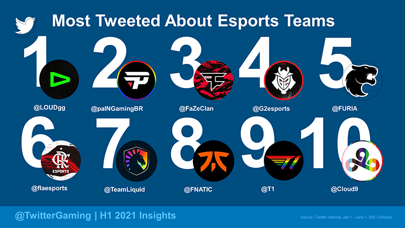 While we are starting to see the return of live sporting events, the esports industry never let up amidst the pandemic due to online play, with plenty of leagues ramping up since the beginning of the year. We’ll stay tuned on the impact around live esports events when those return in the second half of the year as well. Here are some key global insights into the esports conversation on Twitter, including the most Tweeted about athletes, leagues, & teams in 2021 so far.