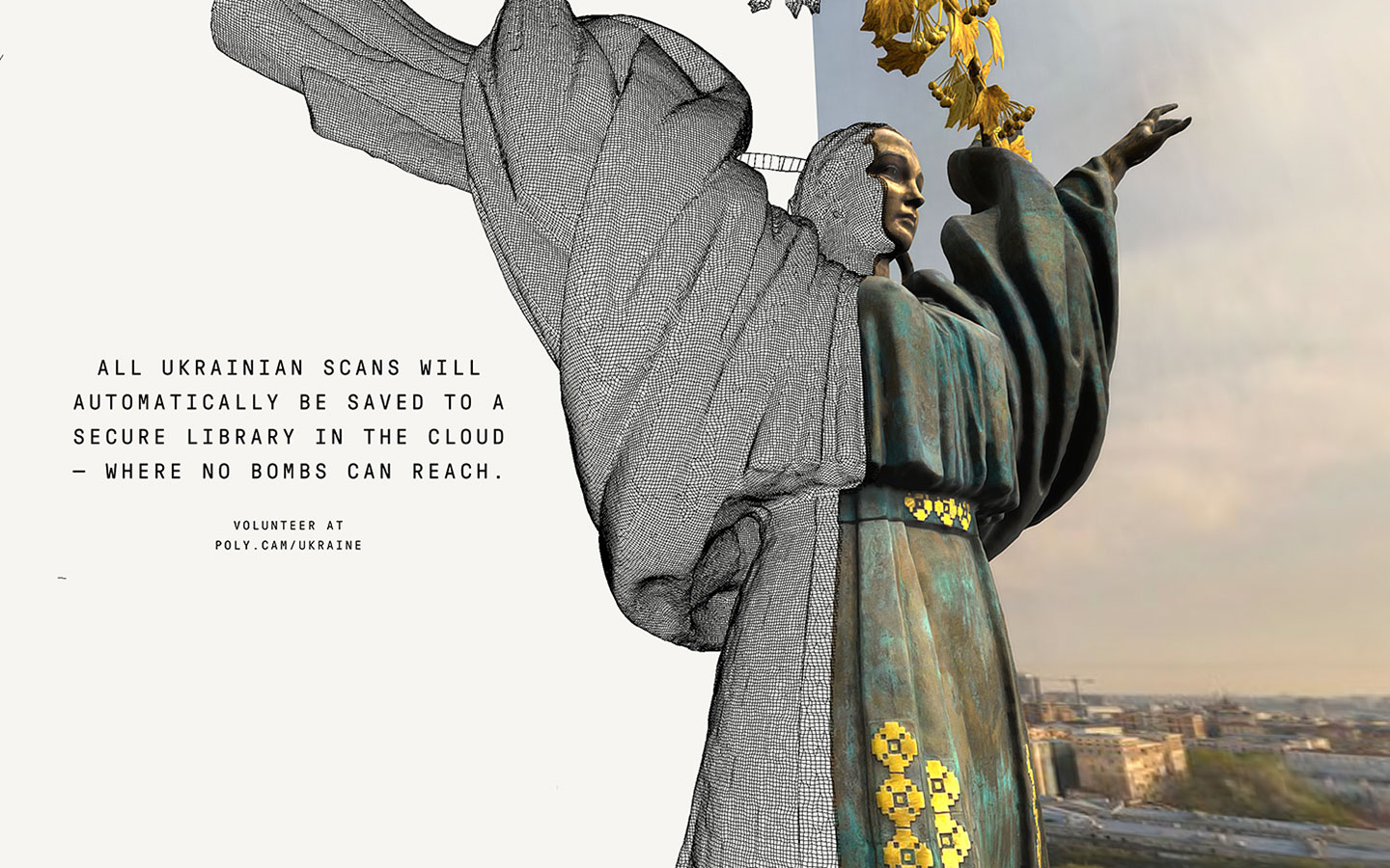 Backup Ukraine is an initiative inviting civilians to digitally preserve their nation. The Danish UNESCO National Commission, Blue Shield Denmark and Polycam, a powerful prosumer app that allows anyone with a newer iPhone or iPad to completely capture objects or even rooms in 3D, are partnering to repurpose the core Polycam product and distributing it to create a means for any person in Ukraine to quickly and easily scan and upload digital renderings of important architecture, statues and monuments.