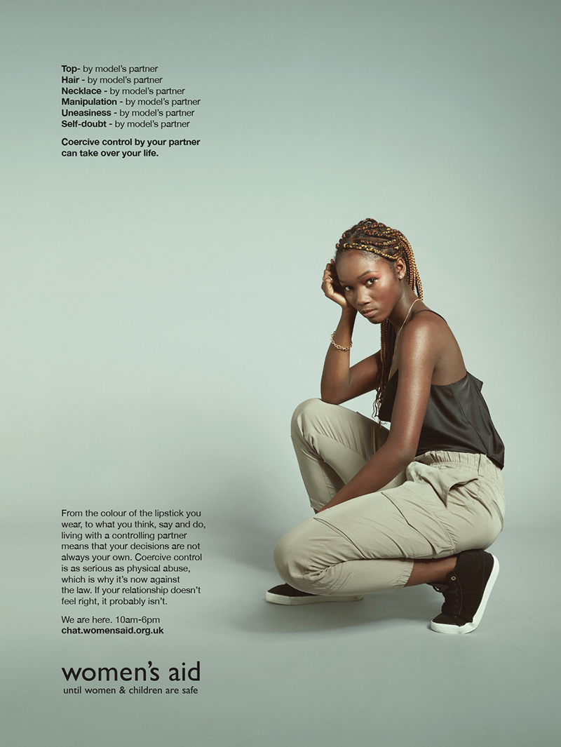 Christopher Ringsell, Creative Director at Engine Creative, said: “Drawing young women in with aspirational fashion shots and then letting them realise there is a sinister vulnerability behind the glossy look will hopefully raise awareness of coercive control and help the viewer question anything that does not feel right in their own relationship.”