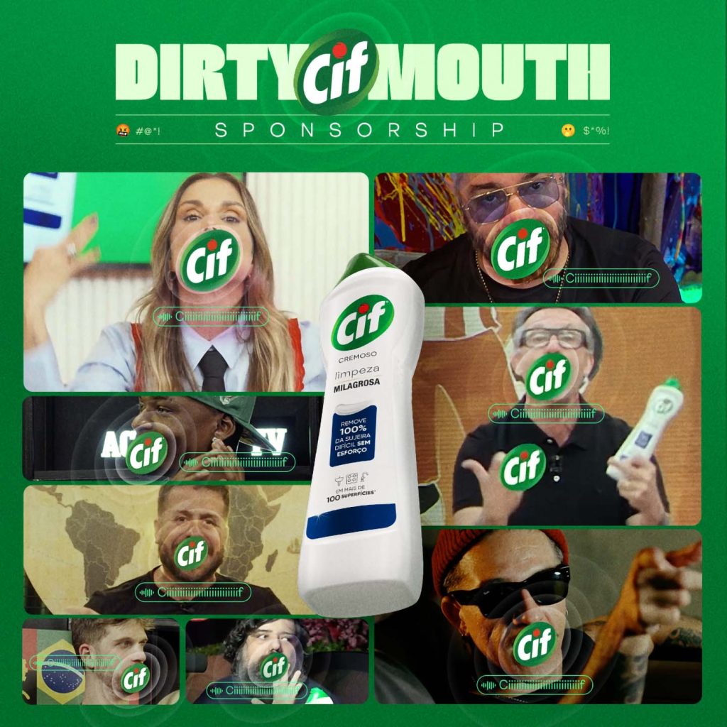 SAO PAULO, BRAZIL – CIF Miracle Clean, known for effortlessly cleaning over 100 different surfaces*, from stovetops to sneakers, has pulled off yet another miracle: scrubbing “dirty mouths” to clean up monetization for entertainment platforms. In a bold activation, CIF is taking its cleaning concept into new media territory by sponsoring swear words on podcasts, TV shows, and livestreams.