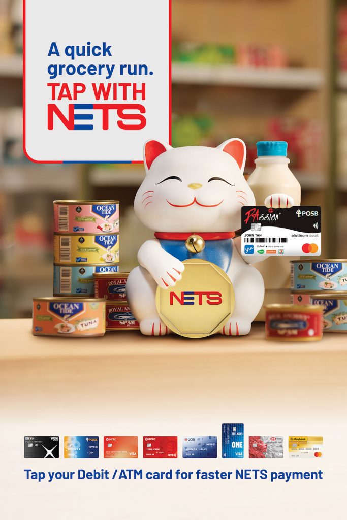 The agency is tapping into the iconic and well-loved fortune cat to educate debit cardholders in Singapore’s heartlands on a more convenient payment option at partner merchants nationwide: tapping ATM or debit cards to pay with NETS.