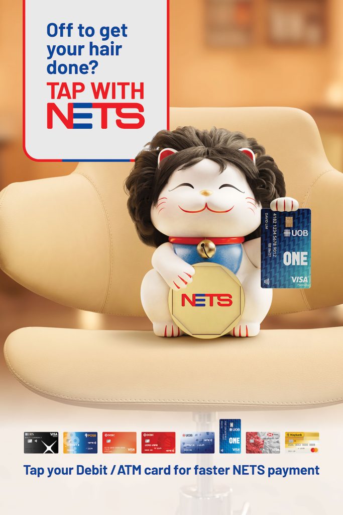 The social-first campaign is centered around a series of catchy 15-second videos set in popular NETS merchant categories, including neighborhood eateries, hair salons, and grocery stores. Mimicking the fortune cat’s iconic wave, the videos follow the adventures of NETS Tappy Cat, tapping with an ATM or debit card to get what it wants faster and easier.
