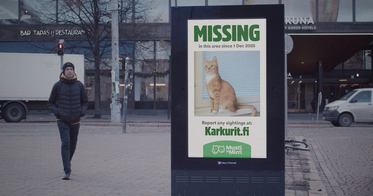 A more efficient solution has finally been developed to complement traditional posters and social media updates in the search for a lost pet. The solution is an experiment by the pet supply chain Musti Group, utilizing outdoor advertising screens in the area where the pet has gone missing. When a pet goes missing, the alert submitted on the Karkurit.fi website automatically appears on the outdoor screens in the area based on the postal code. The site is Finland’s most widely used platform for reporting lost pets. The alert appears on the screens among regular advertisements around the clock – free of charge.