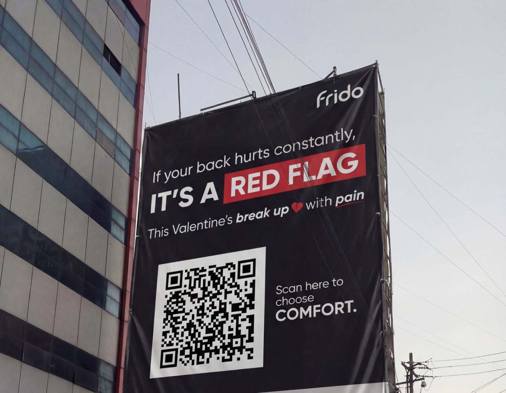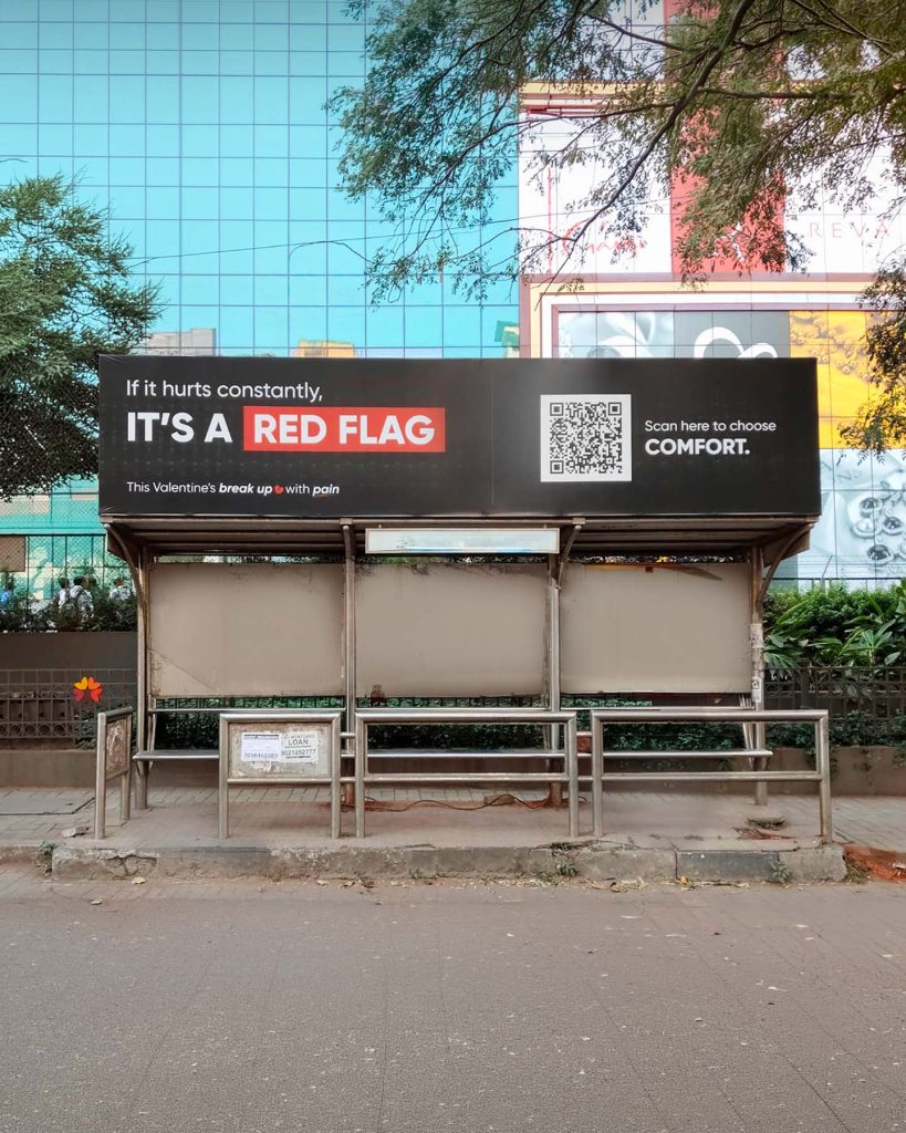 Taking the conversation beyond digital, Frido has executed a high-visibility outdoor takeover across key urban hotspots. Large-format billboards declaring “If it hurts constantly, it’s a RED FLAG” have appeared across high-traffic junctions and transit points, transforming everyday commute routes into cultural conversation starters. Each installation integrates a prominent QR code, inviting passersby to literally “scan to choose comfort,” bridging physical visibility with digital action.