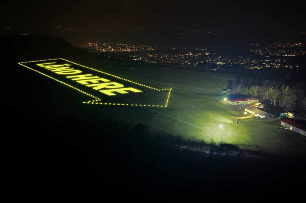 Matching Winfried’s own commitment, authorities have facilitated an official, state-run landing strip in Mössingen for prospective visitors to land from anywhere across our planet (and even beyond): video invitations show a large yellow arrow pointing to it, with the illuminated words “LÄND HERE.”
