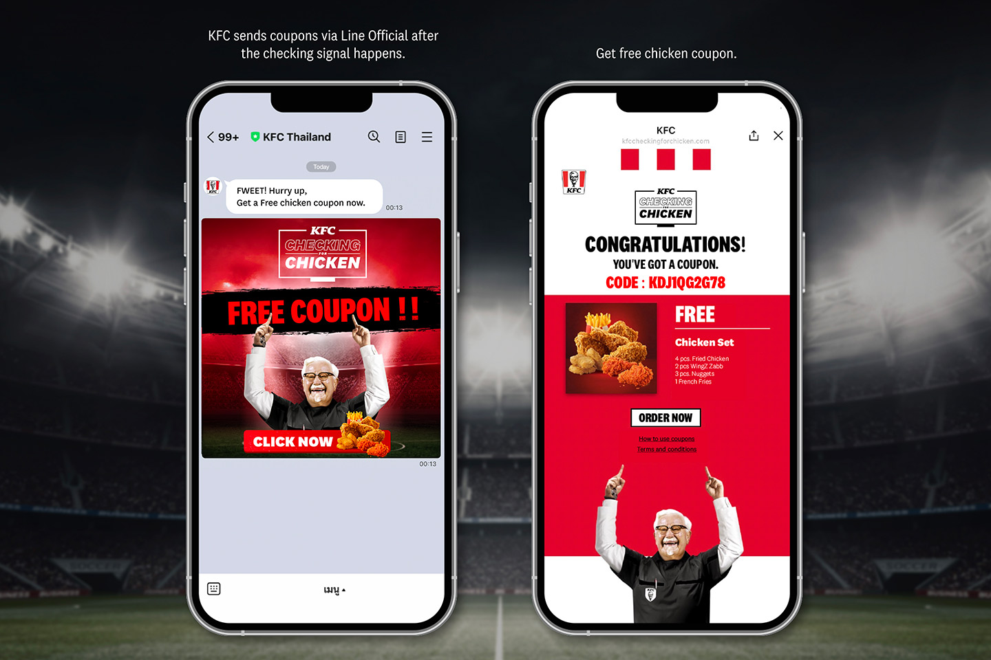 BANGKOK, THAILAND — Creative agency CJ Worx has created a campaign to turn the much-hated Video Assistant Referee (VAR) into an exciting moment for fast food brand KFC. During the football game, “Checking for Chicken” from KFC popped up the limited saving coupons on its app upon the appearance of the VAR. In turn, thousands of KFC fans rushed to the app to claim those coupons.