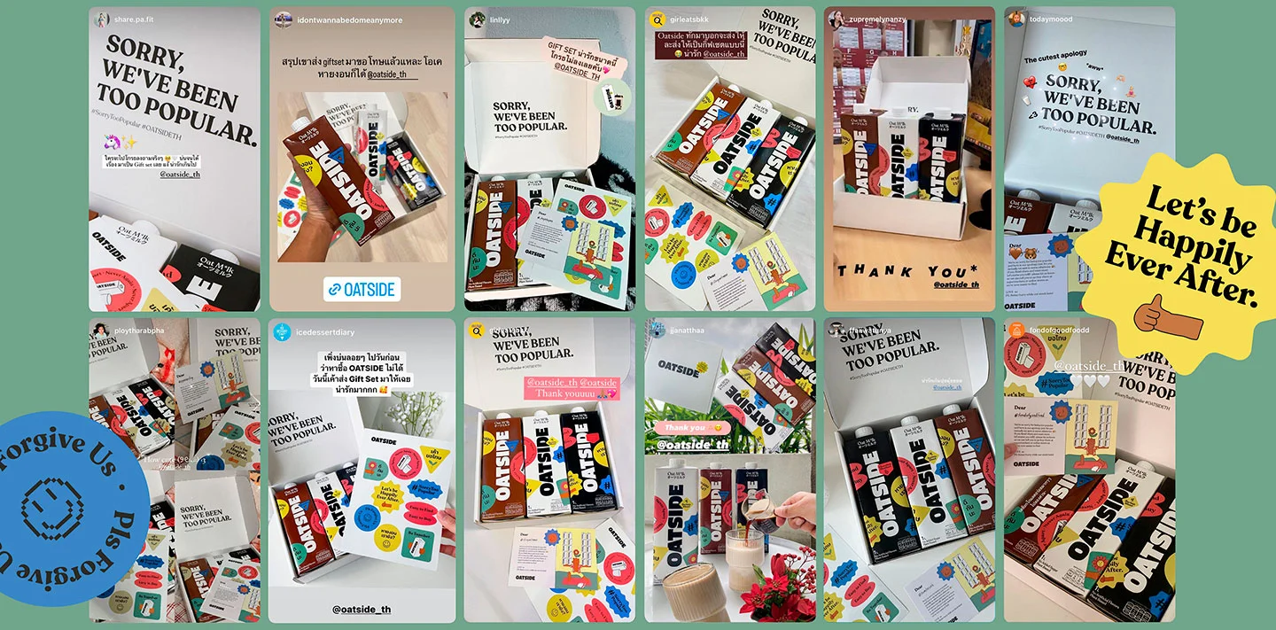 Oatside further created a special gift set with hand-crafted, customized postcards as an apology to each and everyone who complained. Such act of sincerity won the public’s hearts resulting in free media from real consumer shares that helped to spread not just how cute and loveable the brand is but also how delicious its product is.
