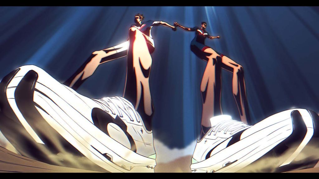 Simon and renowned Animation Director Yibi Hu (Future Power Station) co-wrote the film and joined forces to bring their vision to life. The 2D animation process was combined with 3D motion capture technology to push the project’s technical and creative boundaries, resulting in a spectacular film. In the same innovative way, old Norse mythology and animation aesthetics were seamlessly merged with the topic of triathlon, resulting in a fresh take and artistic choices that appeal to young audiences.