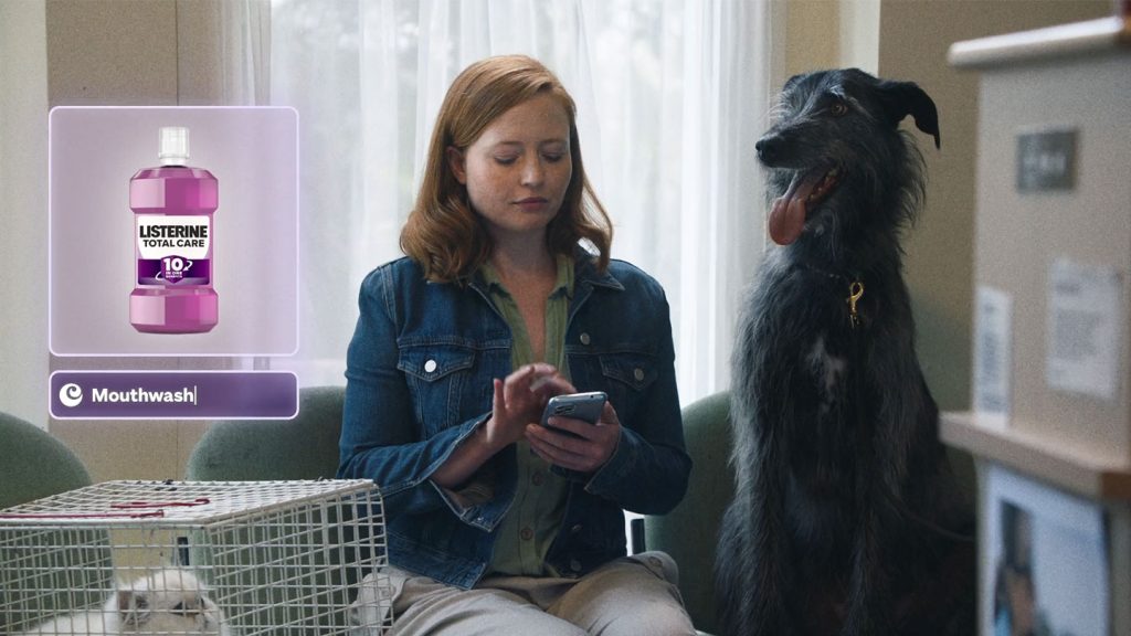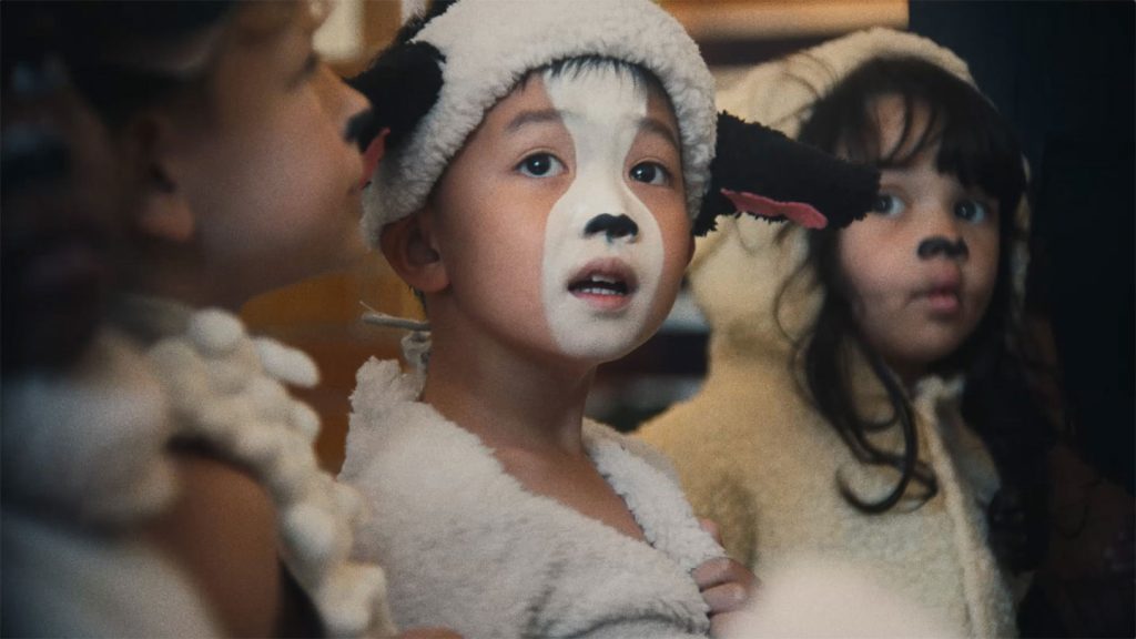 One vignette shows a mum proudly filming her child’s stage debut as one of the lambs in the school play, she nods and smiles at another mother who is also holding her smartphone aloft. We then discover this second mother is actually searching for ‘mint sauce’ on the Ocado app, thanks to the reminder of the dancing flock. In another scene, a life drawing student is inspired to pick up his smartphone mid-class and search for “cocktail sausages.”
