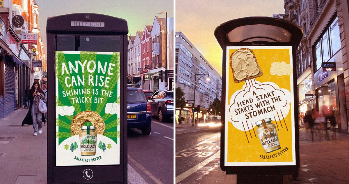 Rich Denney, Joint Chief Creative Officer says, “For years we’ve been told breakfast is the most important meal of the day, and who better to tell us than, Whole Earth, the nation’s No1 peanut butter, with delicious headlines and beautifully crafted design to match. Tasty.”