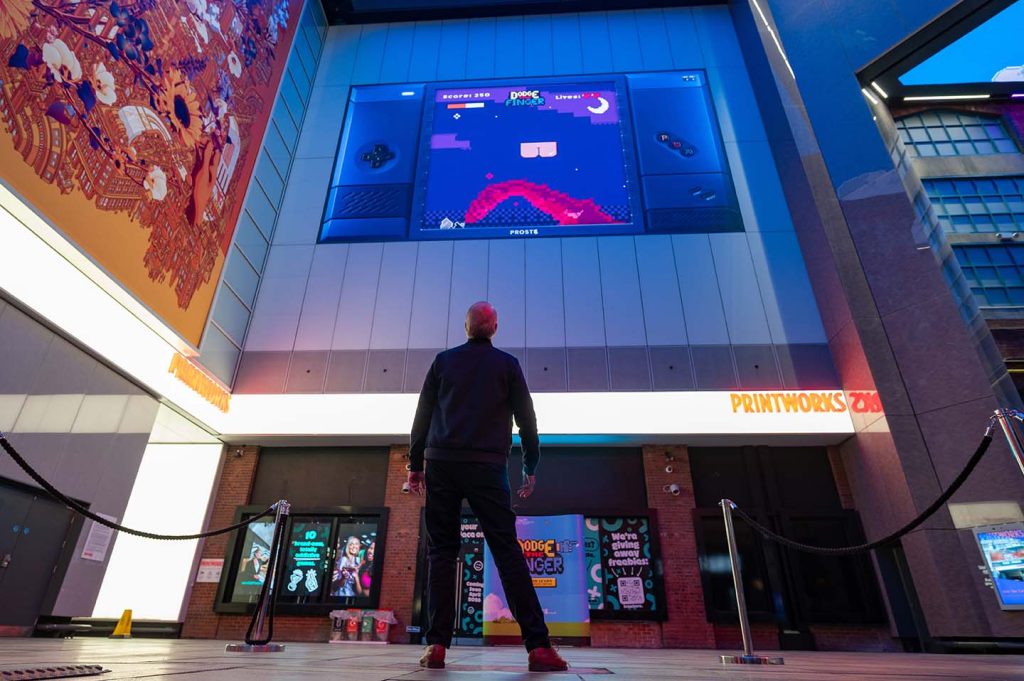 The centrepiece is a retro-style playable game which invites players to control a virtual bum with their own backsides, using Ocean’s skeletal tracking technology to avoid the fingers as they move across the big screen. The games was played at Printworks, Manchester, UK on 4th March and appears at Westfield Stratford City in London on 14th March, the days and locations chosen to coincide with big match days.