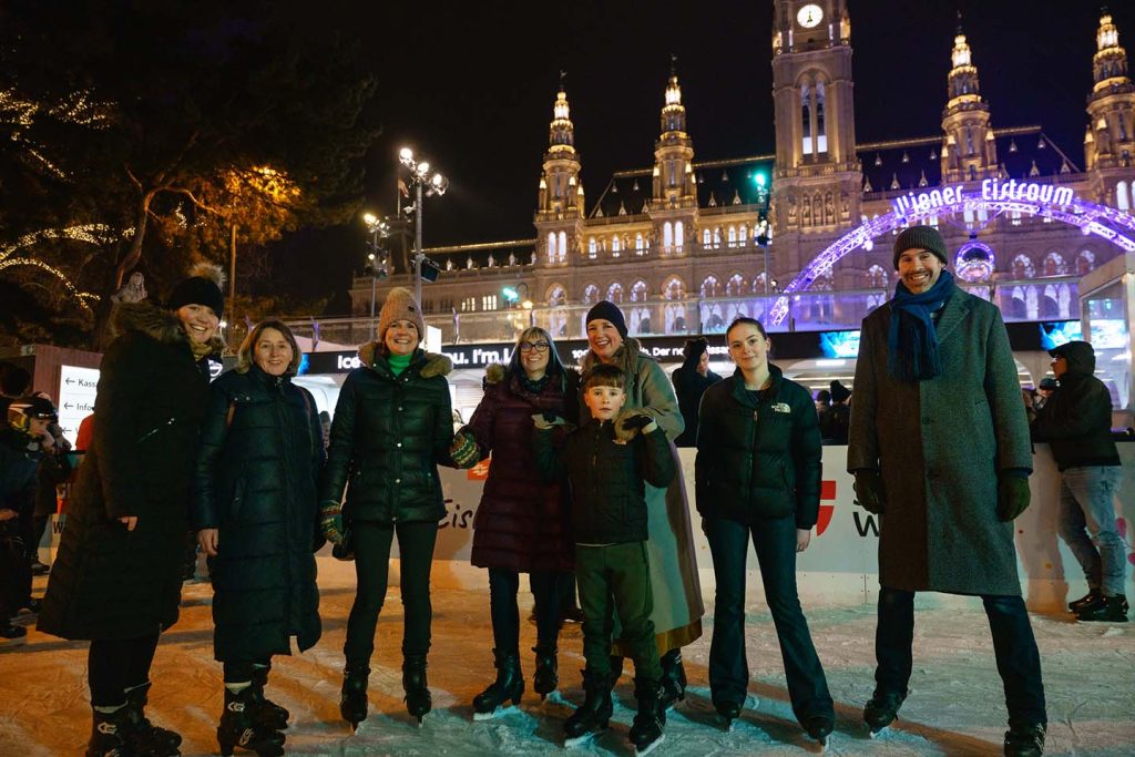 The afternoon offered a range of cultural experiences, including a traditional Viennese waltz lesson, preparing the residents for the city’s renowned ball culture, as well as ice skating at the Vienna Ice World, where they enjoyed the expansive outdoor rink and special atmosphere in the heart of the city. In the evening, some guests attended a classical concert at the Karlskirche, experiencing Vivaldi’s Four Seasons performed on baroque instruments, before the program culminated at Vienna’s City Hall, which had been transformed for one of Vienna’s 450 balls, the Vienna Ball of Sciences. The guests from Dull who attended the ball, complete with formal attire and prior dance preparation, joined Vienna’s science and research community for a truly memorable evening.
