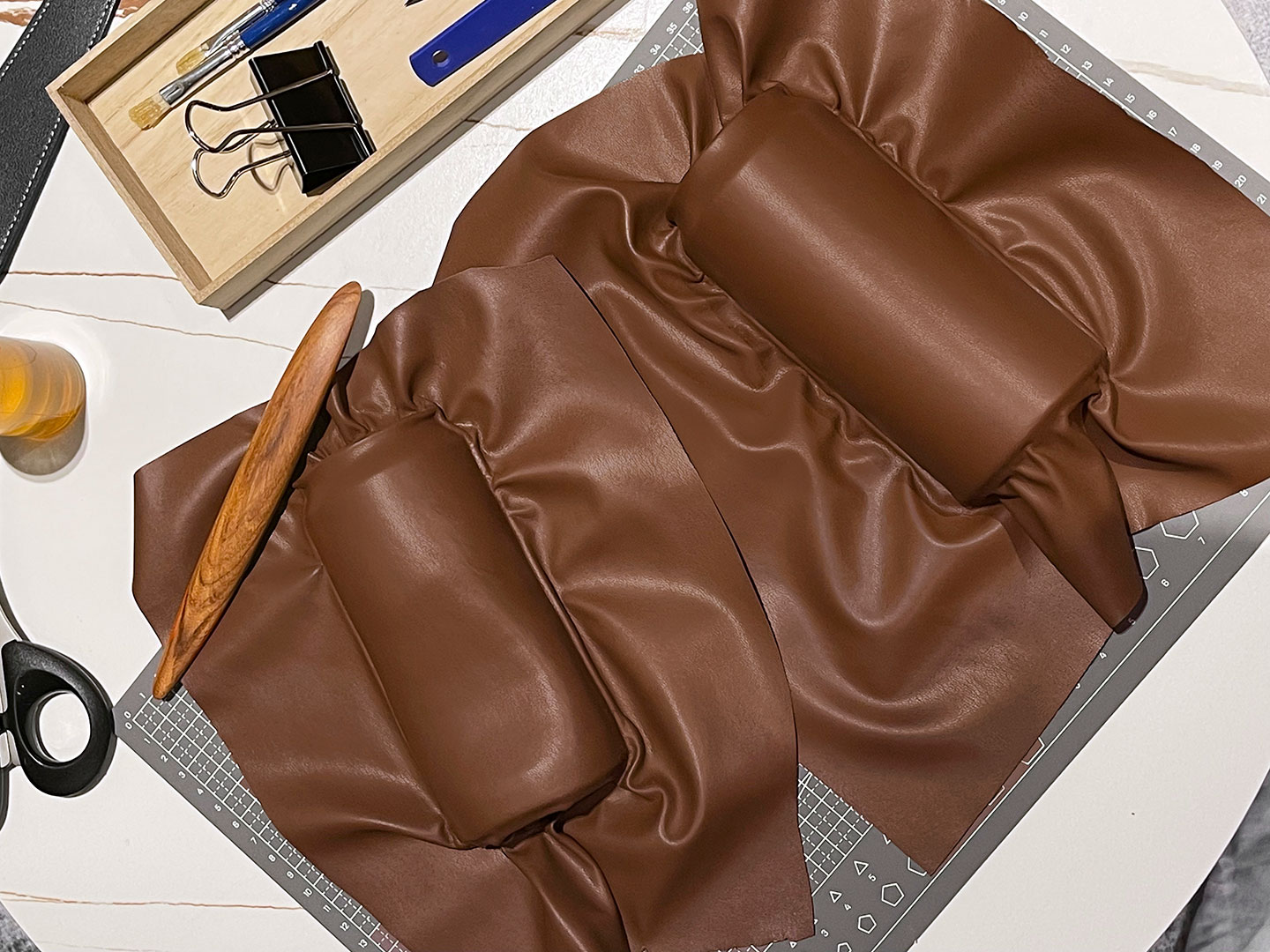 The grape leather is created by the small French leather maker Planet of the Grapes. The process is quite a lengthy one going back to the era of craftsmanship and taking time to create a unique and natural material, free from fossil fuel-based plastics. Grape waste is collected from the vineyards, dried under the Provençal sunlight, and then ground into a fine powder. This is blended with totally natural local ingredients, turned into a liquid and finally a type of leather.