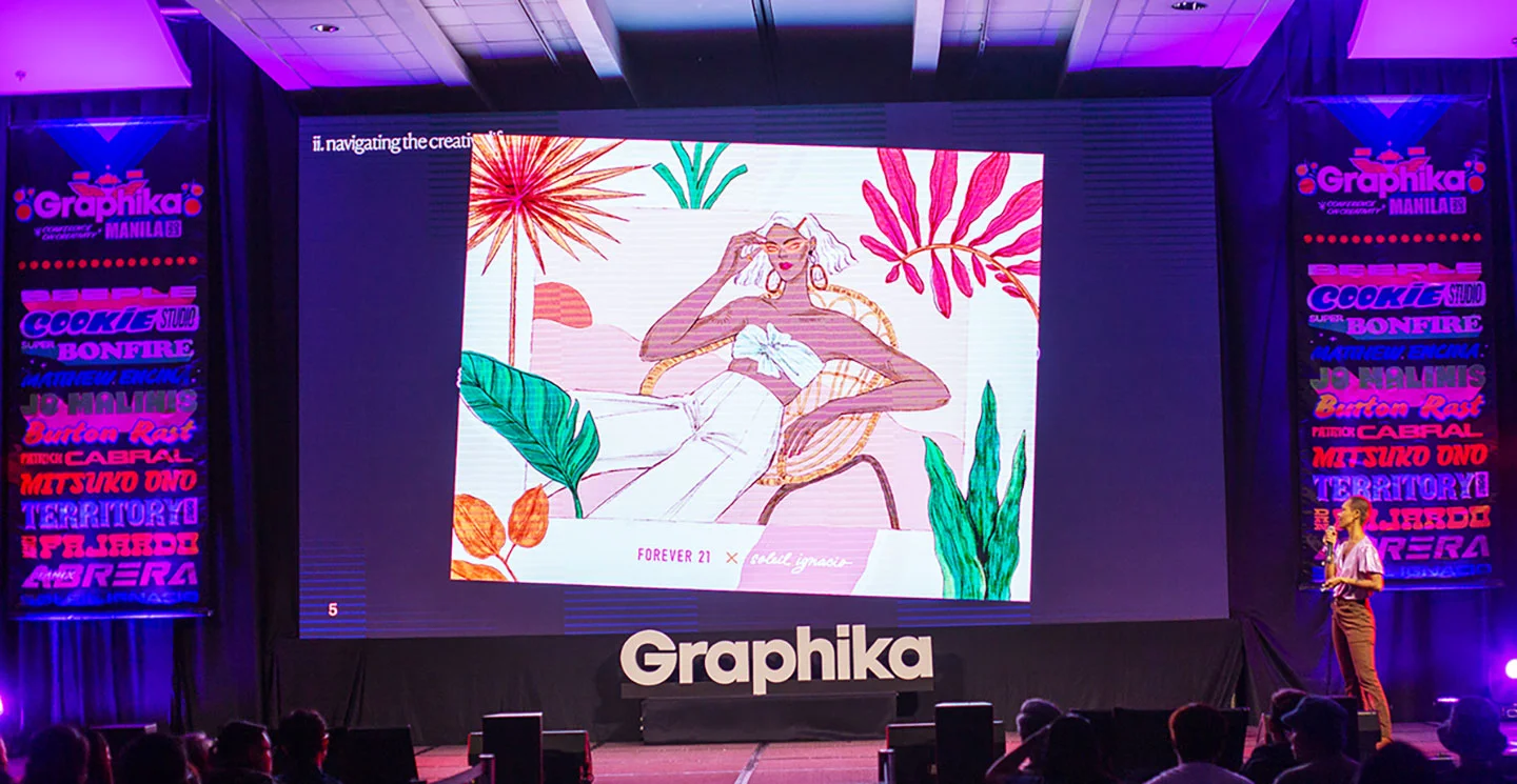 MANILA, PHILIPPINES — This year, like the years before, the Graphika Manila conference hall was packed with creatives, all on their own journeys as they navigate their path in the industry. So, it’s probably fair to say that when graphic designer and illustrator Soleil Ignacio, one of the many illustrious professionals that made up this year’s impressive speaker lineup, got up on stage to talk about her creative journey and the inevitable rejections, moments of doubt, and crises that came with this career, it resonated with the audience.