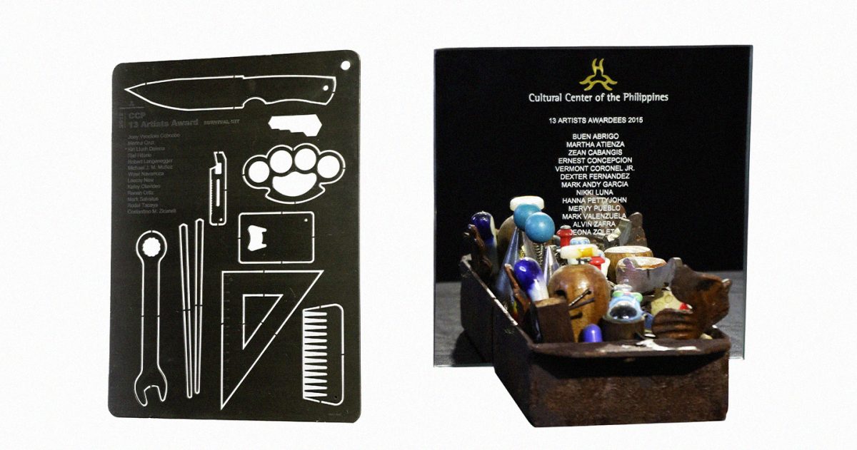 Six years after receiving his CCP TAA trophy in 2006, Pastrana was commissioned to create the trophy for the 2012 edition of the prestigious visual arts award. Taking a more industrial approach, Pastrana was inspired by observing a pocket survival kit being sold on the street. It sparked an idea of crafting a trophy as a collection of an artist’s essential tools for survival, symbolizing what every artist needs to thrive.