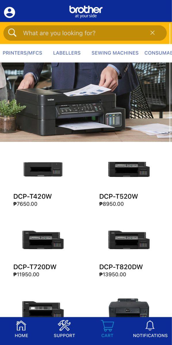 iShop puts together Brother’s available inkjet and monolaser printers, labellers, sewing machines, and consumables such as ink cartridges all in one place on the Customer Plus App. It’s accessible by tapping the shopping cart icon on the Customer Plus homepage, and all purchases are made through Brother’s authorized dealers and partners.