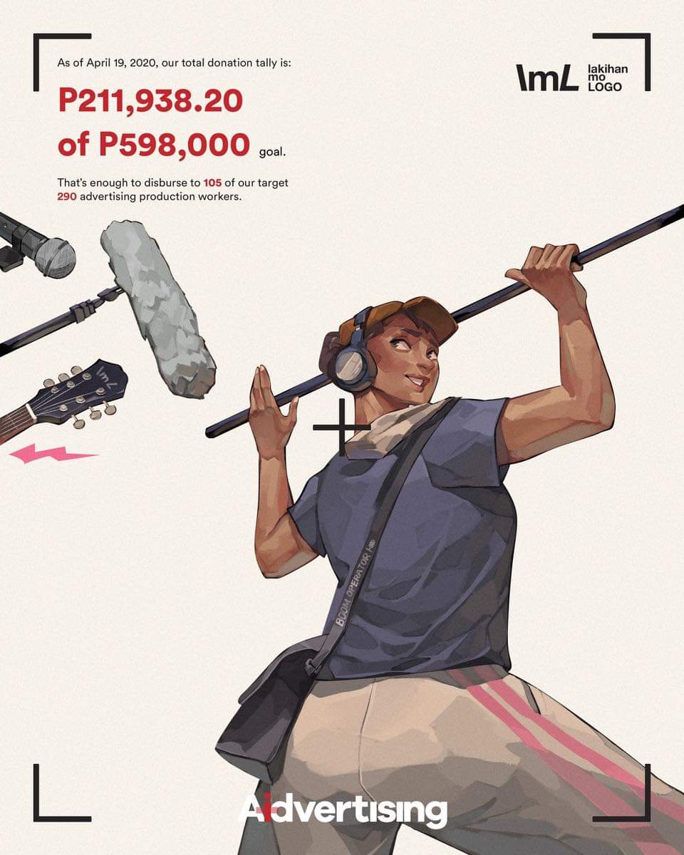 According to the creators of Aidvertising, namely Caloy Soliongco, Tony Battung and Camille Aragona, most of these crew members earn a wage of about a thousand pesos a day on a “no work, no pay” basis, and that many have come to them asking for help. Aidvertising began with 140 beneficiaries, and their goal is to provide two thousand pesos for each one. An additional 100+ came to the group, however, so they’ve raised their goal to 500,000 pesos, which already takes account transaction fees. The group has so far been able to raise 211,938.20 pesos.