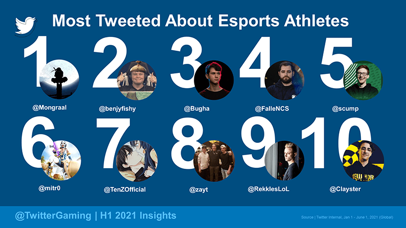 While we are starting to see the return of live sporting events, the esports industry never let up amidst the pandemic due to online play, with plenty of leagues ramping up since the beginning of the year. We’ll stay tuned on the impact around live esports events when those return in the second half of the year as well. Here are some key global insights into the esports conversation on Twitter, including the most Tweeted about athletes, leagues, & teams in 2021 so far.