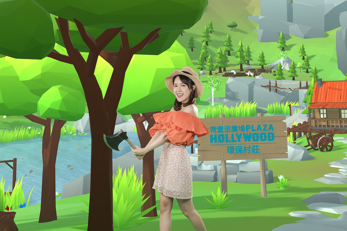 Inside the Metaverse, Plaza Hollywood turns up as a 3D virtual eco-village featuring three themed zones, namely “Harvest Farm”, “Jungle Park” and “Green Town”, with separate paths. Try your hands at gardening, chicks feeding, fishing, butterfly catching, logging, waste recycling and more to receive items needed to complete the assigned missions. To play the games, log into the everyday game first to receive props like axe, insect sweep net, and fishing rod. For a more convenient experience, players can also scan the in-mall QR codes to receive a ‘welcome toolkit’.