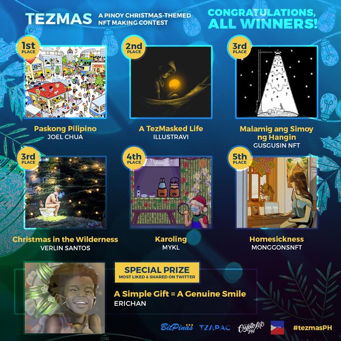 - First Place: “Paskong Pilipino” (Filipino Christmas) by Joel Chua ($400 in tez)