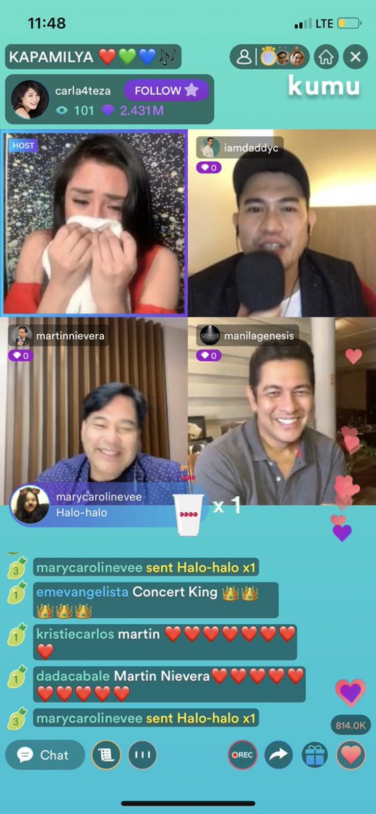 kumu, according to Carla, has also given artists a place to reconnect with their contemporaries and friends in the industry of entertainment: “We have met new people and gained new friends and supporters on kumu who appreciate what we offer to them as viewers.”