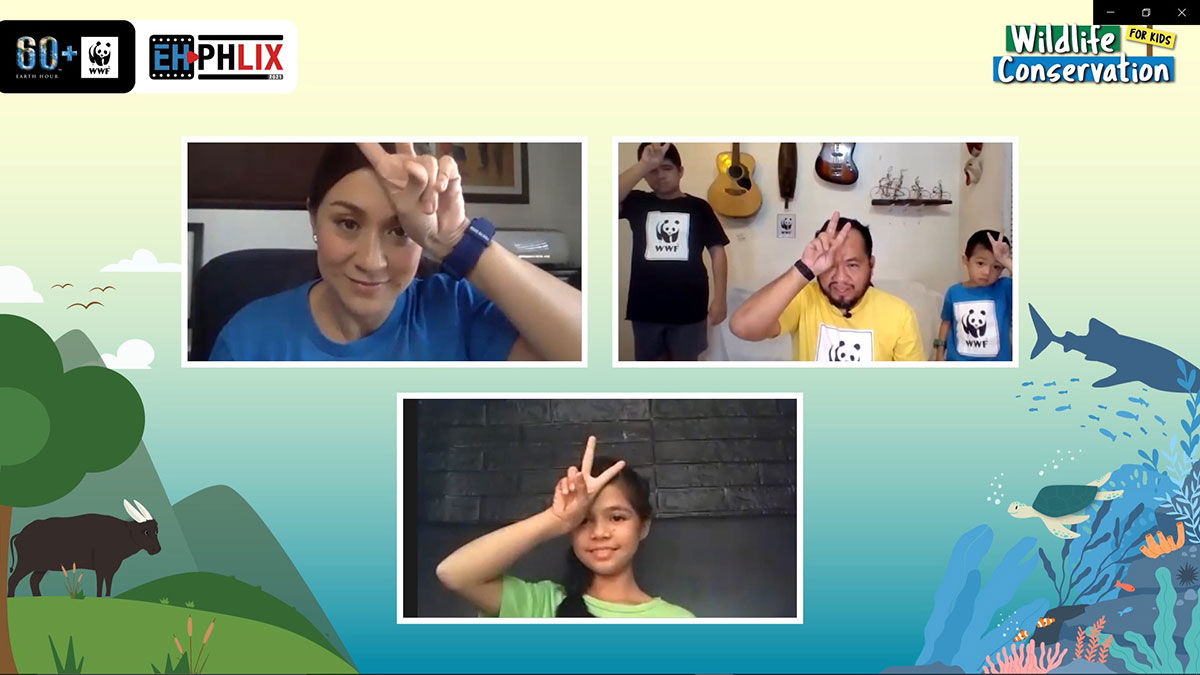 EH PHlix concluded with the Countdown to Earth Hour, hosted by WWF-Philippines National Ambassadors Marc Nelson and Rovilson Fernandez. Messages on the significance of climate change and appeals for climate action and conservation were delivered by Secretary Emmanuel M. de Guzman of the Climate Change Commission, WWF-Philippines Earth Hour Pilipinas National Director Atty. Angela Ibay and WWF-Philippines Executive Director Katherine Custodio. A message to the youth of today from the members of the WWF-Philippines National Youth Council was also delivered. This was followed by a short panel discussion wherein Climate Change Commissioner Atty. Rachel Anne Herrera joined Atty. Ibay, Ms. Custodio, and WWF-Philippines Ambassador Karen Ibasco in discussing the need for a green recovery post-pandemic. This, in turn, was followed by the final countdown to Earth Hour. Videos from WWF International, as well as from partners and ambassadors of WWF-Philippines, were played throughout the hour.