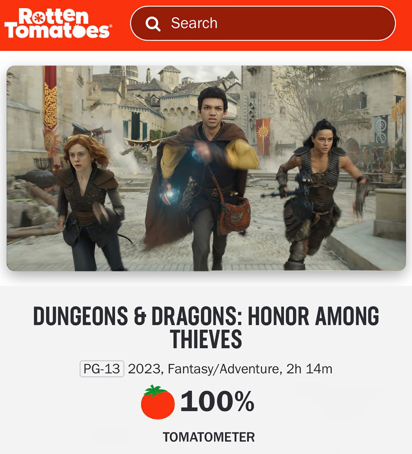 Dungeons & Dragons: Honor Among Thieves currently as a 100% Fresh Rating at the review aggregator site, Rotten Tomatoes.