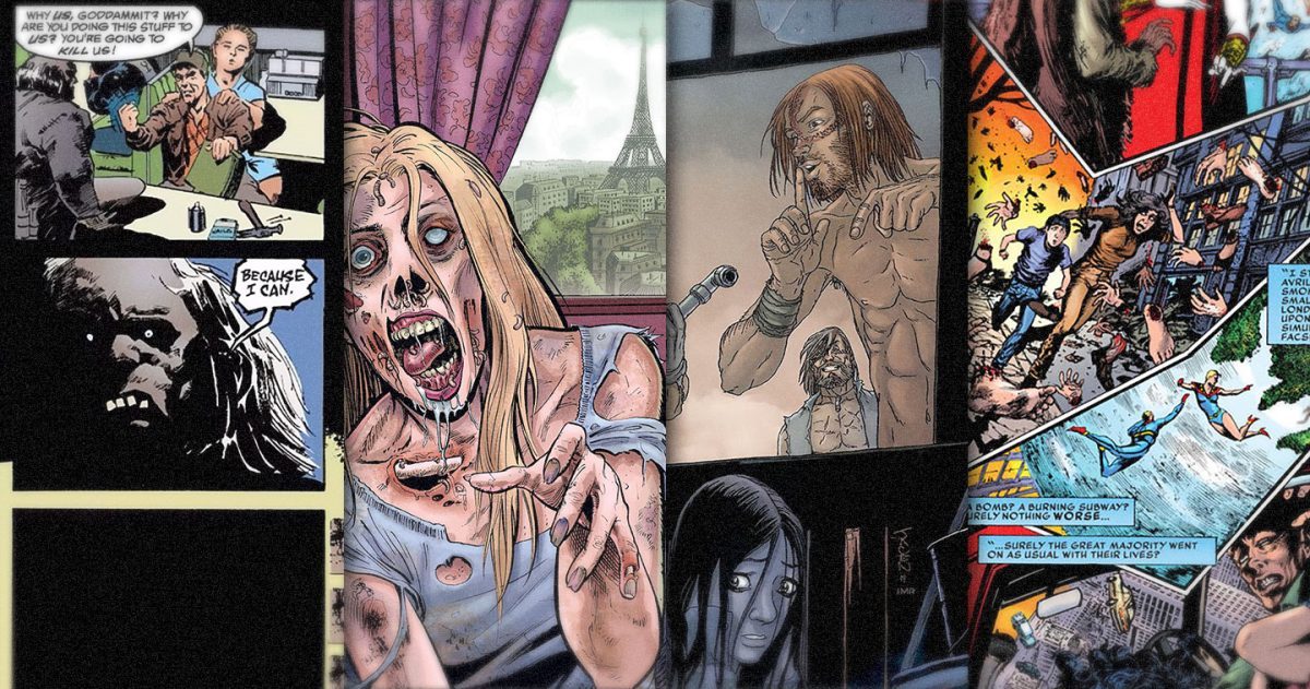 A more malevolent take on the zombie genre, people infected by this virus (through blood, semen, and spit) become cunning, sadistic, and murderous sexual predators and are identified by the strange rash in the shape of a cross that appears on their face. As this horrific pandemic spreads, a husband and wife with their daughter flee to the woods only to be surrounded by the Crossed. What happens next is a double-page spread of defilement, sodomy, and carnage too horrific to show in this article.