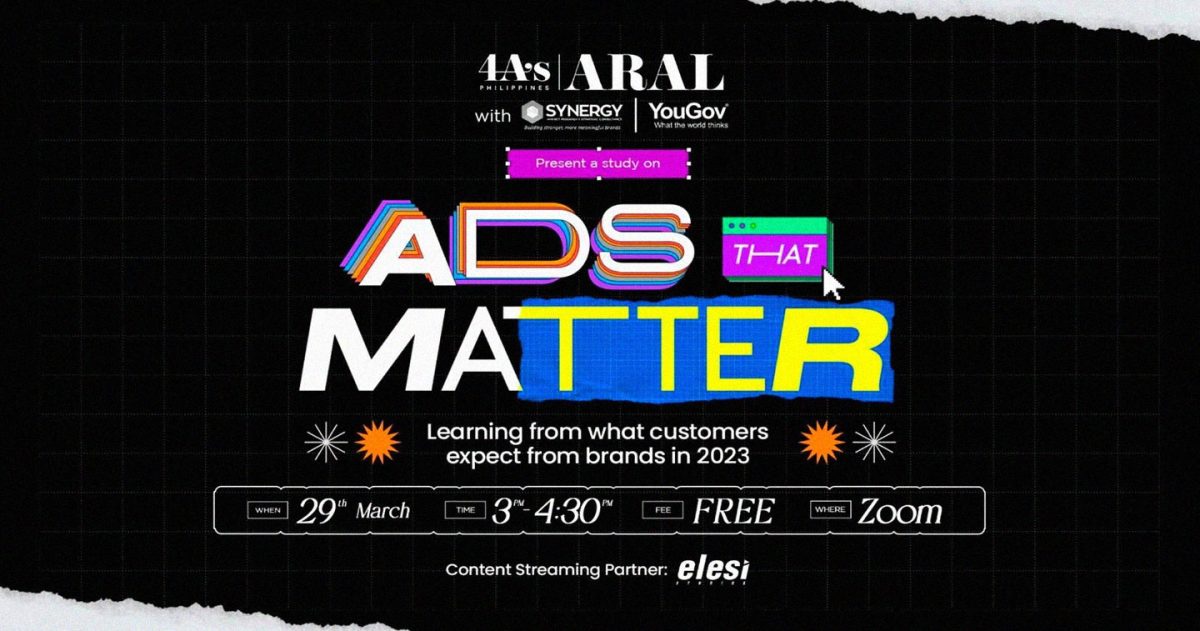 Catch the 4As ARAL Session: Ads That Matter: Learning from what customers expect from brands in 2023 on March 29, 2023, at 3:00 pm for absolutely free. Register here or catch the livestream on the 4As Facebook Page!