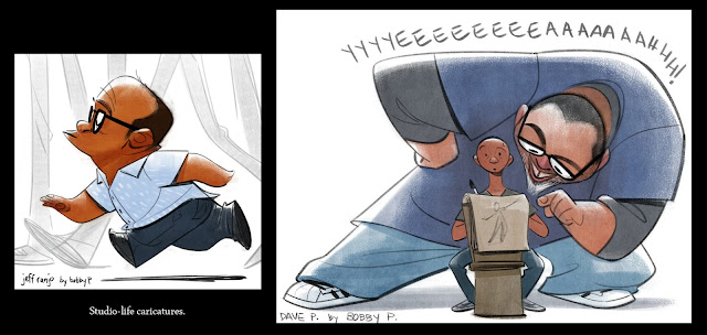 Another pro-tip from Bobby when making background characters and not having personalities to base looks from: Imagine your family members, your friends, that barista from your local coffeeshop, and put them in outfits they’ll probably never wear. He talked about basing some children from the world of Moana off of his cousins here in the Philippines, doing personal illustrative work with people from his life coming in as cameos, and just straight up making caricatures of people he met throughout the years.