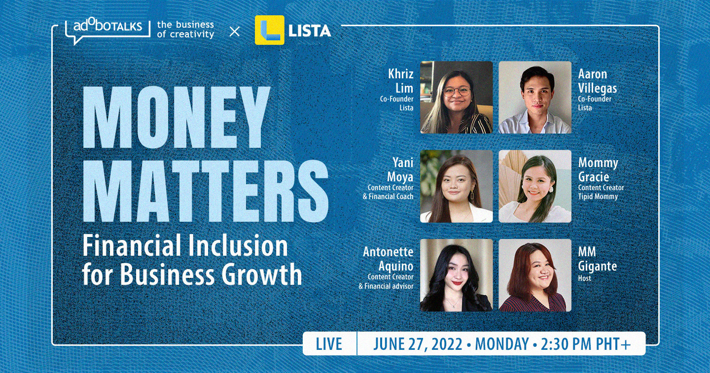 Join in this special edition of #adobotalks, as we have an educational and inspirational chat on how financial management can lead to business growth and advancement with Lista, a financial inclusion app that provides Filipinos a free and secure way of managing finances.