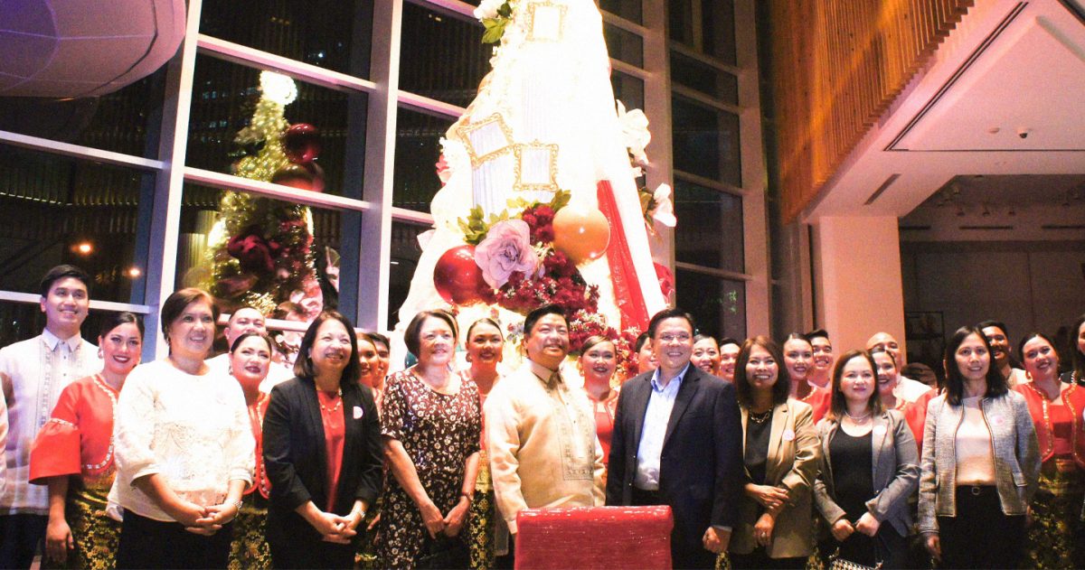 “It doesn’t look like any other tree I’ve seen in town,” said Mariles. With a fusion of the imagery of ancient Roman wedding and Filipiniana flair, the Christmas tree makes use of native materials such as jusi, sinamay, capiz shells, and Inabel and Igorot fabrics.