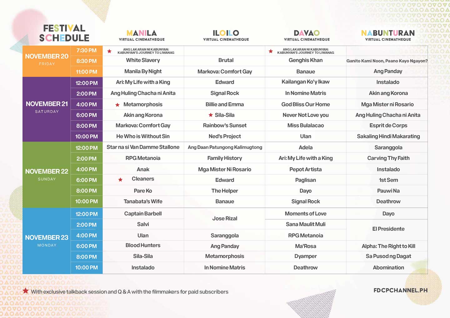 With 80 short films featuring the 12 finalists of the CineMarya Women’s Short Film Festival Premiere, 63 titles from 21 regional film festivals, and five Sine Kabataan shorts, PPP4 has also released the full festival calendar for its lineup of the Main Feature Film Showcase from November 20 to December 13, 2020.