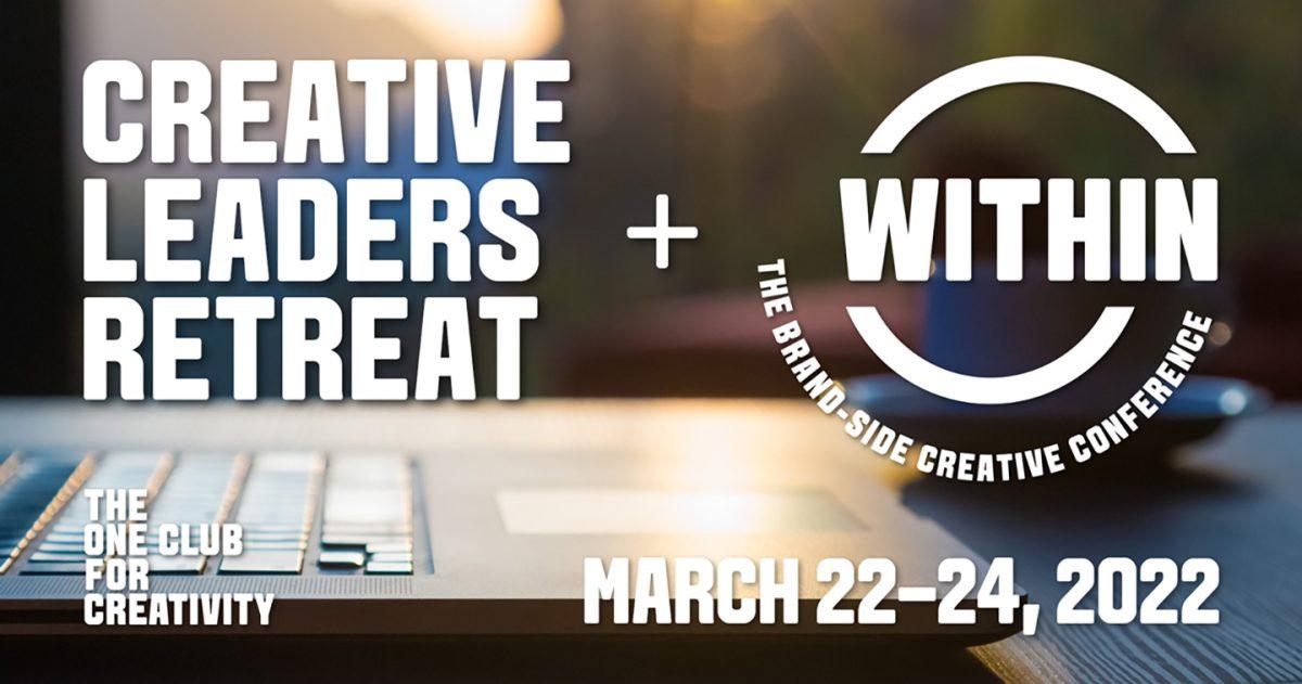 NEW YORK, USA – The One Club for Creativity has combined two of its popular professional development offerings as Creative Leaders Retreat + WITHIN: The Path Forward, a new synergistic virtual conference on Mar. 22-24, 2022 for both agency and brand-side creatives.