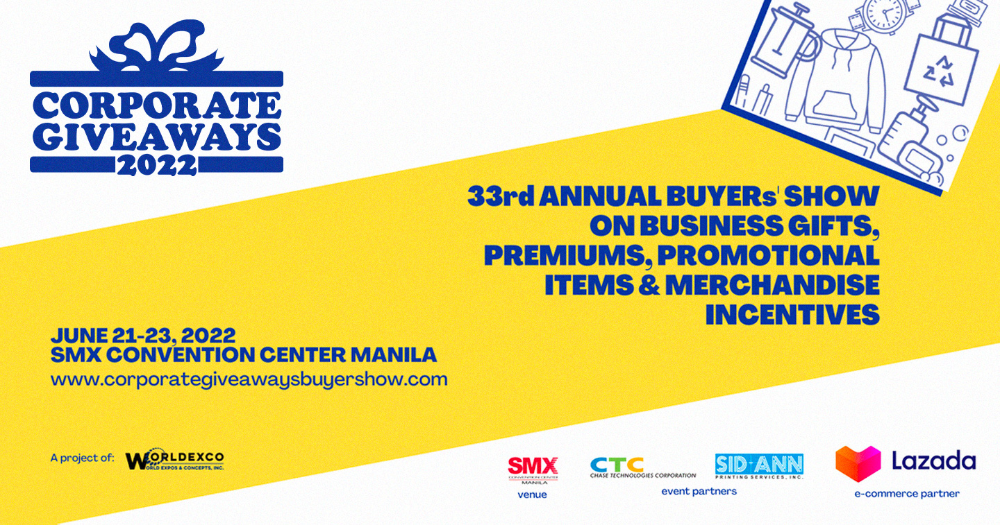 MANILA, PHILIPPINES — The resumption of live, in-person events heralds the return of the Corporate Giveaways Buyers’ Show, the Philippines’ longest-running expo for business gifts. Now on its 33rd year, the trade exhibition on premiums, promotional items, and merchandise incentives will be held from June 21 to 23, 2022 at the SMX Convention Center Manila.