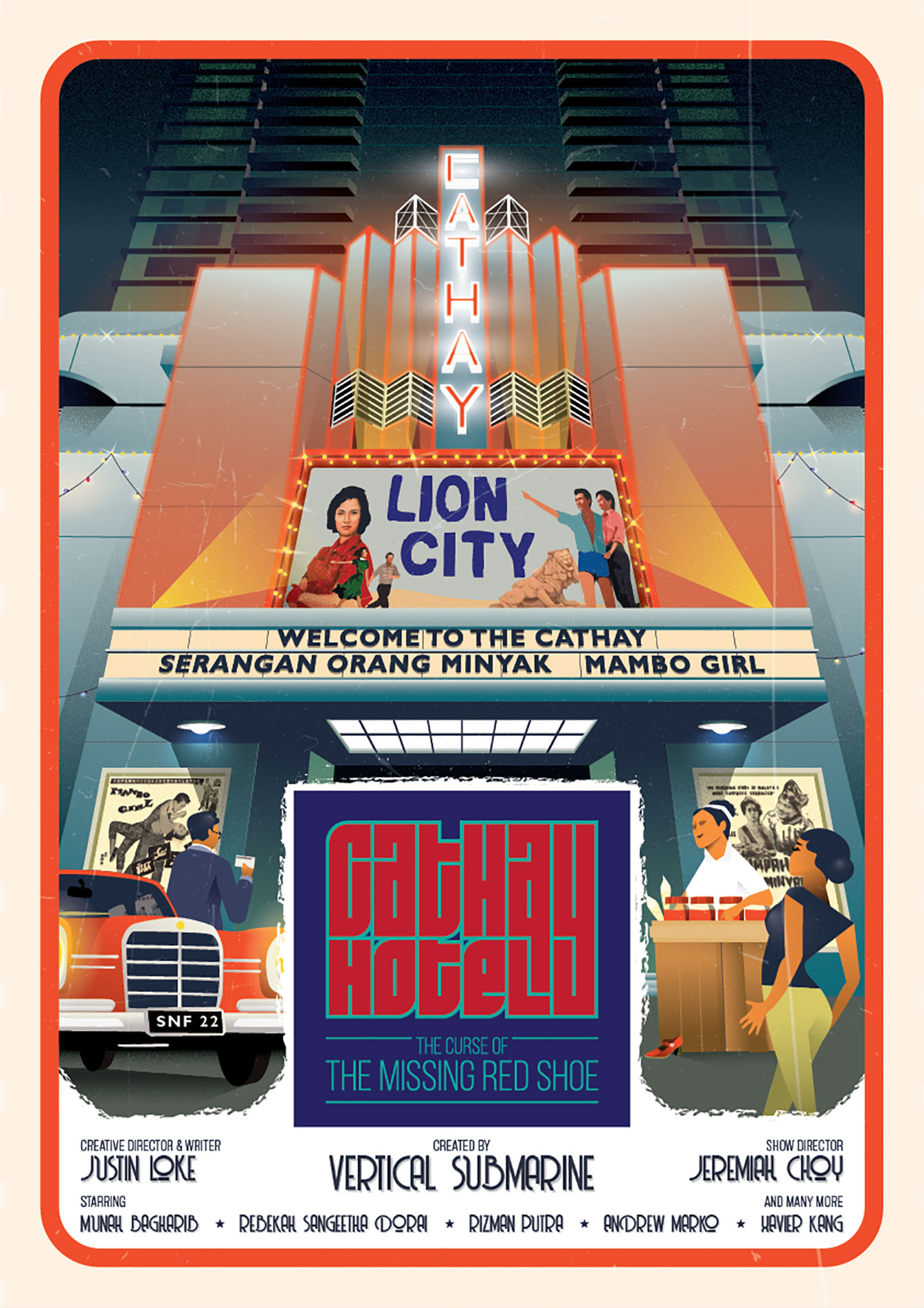 This year’s highlight act, titled “Cathay Hotel: The Curse of the Missing Red Shoe,” has been commissioned specially for SNF 2022. The immersive theatre experience is presented by local art collective Vertical Submarine, written and created by Justin Loke and directed by Jeremiah Choy.