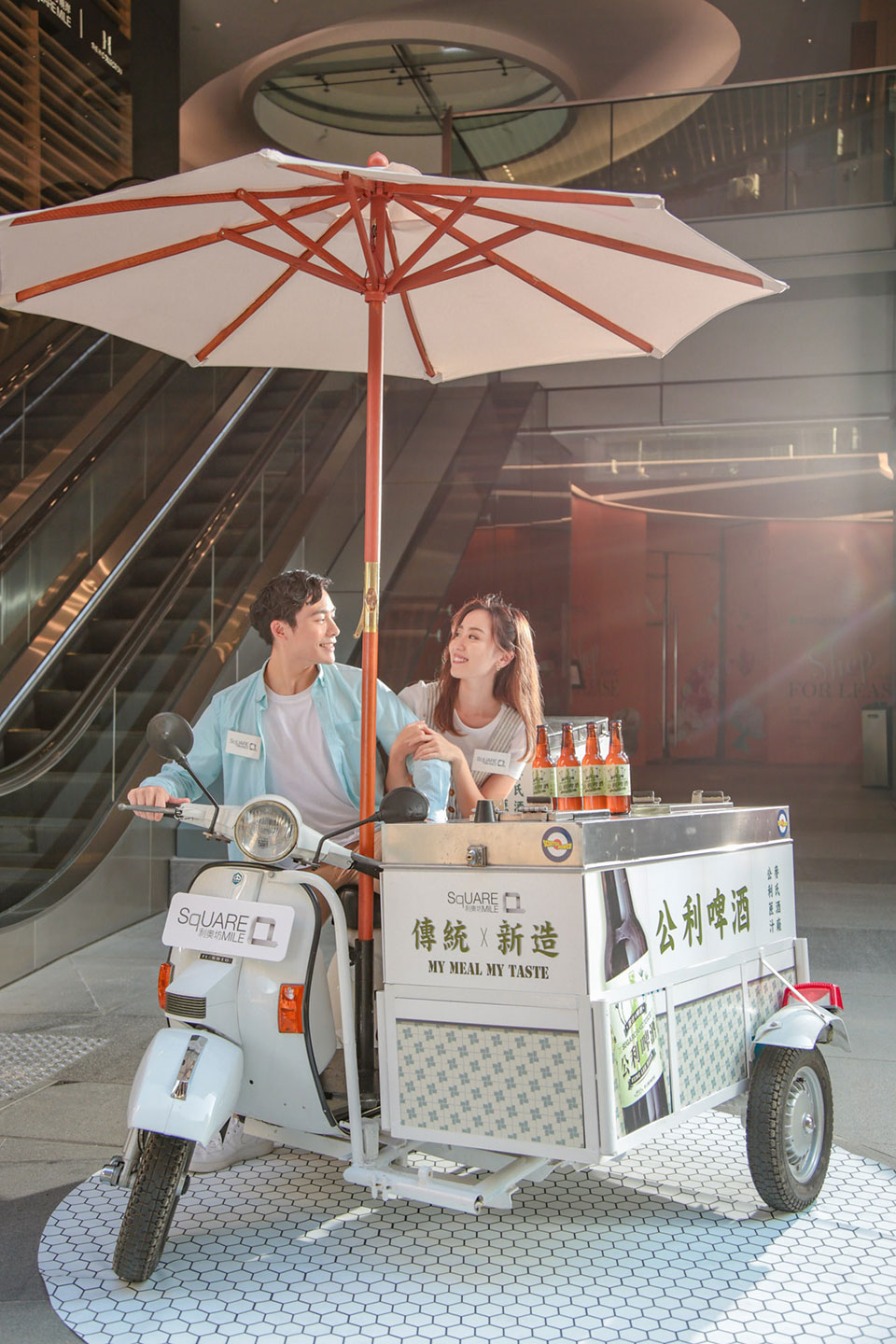 The vintage ice-cream motorbike is known to be one of the most popular items in the memories of many Hongkongers. After all, the fond memories of ice-creams, sodas, and chips are easily linked to this adorable vehicle that went back in time. At the Square Mile “Traditions x Innovations” My Meal My Taste Weekend Market, a vintage ice-cream motorbike was transformed to feature the Kung Lee Sugarcane Juice x Mak’s Brewery vintage craft beer. Located on G/F, this photographic spot is indeed a not-to-be-missed attraction.