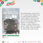 Included in this festival are Cria Puercos (2018) by Ehecatl Garcia, which storyline focuses on the grief that the death of the antagonist’s husband and the absence of her son leave in her life until a piglet comes along, and Más Amanceres (2013), a masterpiece of Jorge Leyva, distinguished as the ‘Best Debut Film’ at the 2013 Guanajuato International Film Festival, about the lives of two children and how their actions affect each one of them.