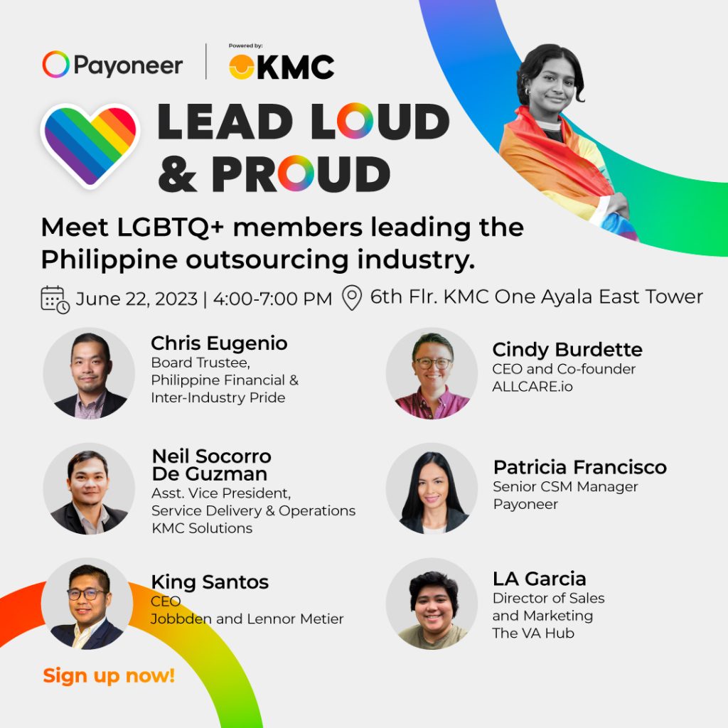 MANILA, PHILIPPINES — Payoneer, a global payment platform, has announced an upcoming celebration this Pride Month. The event, powered by KMC Solutions, is titled “Lead Loud and Proud: Meet LGBTQ+ members leading the Philippine outsourcing industry” and will be held on June 22 at KMC One Ayala.