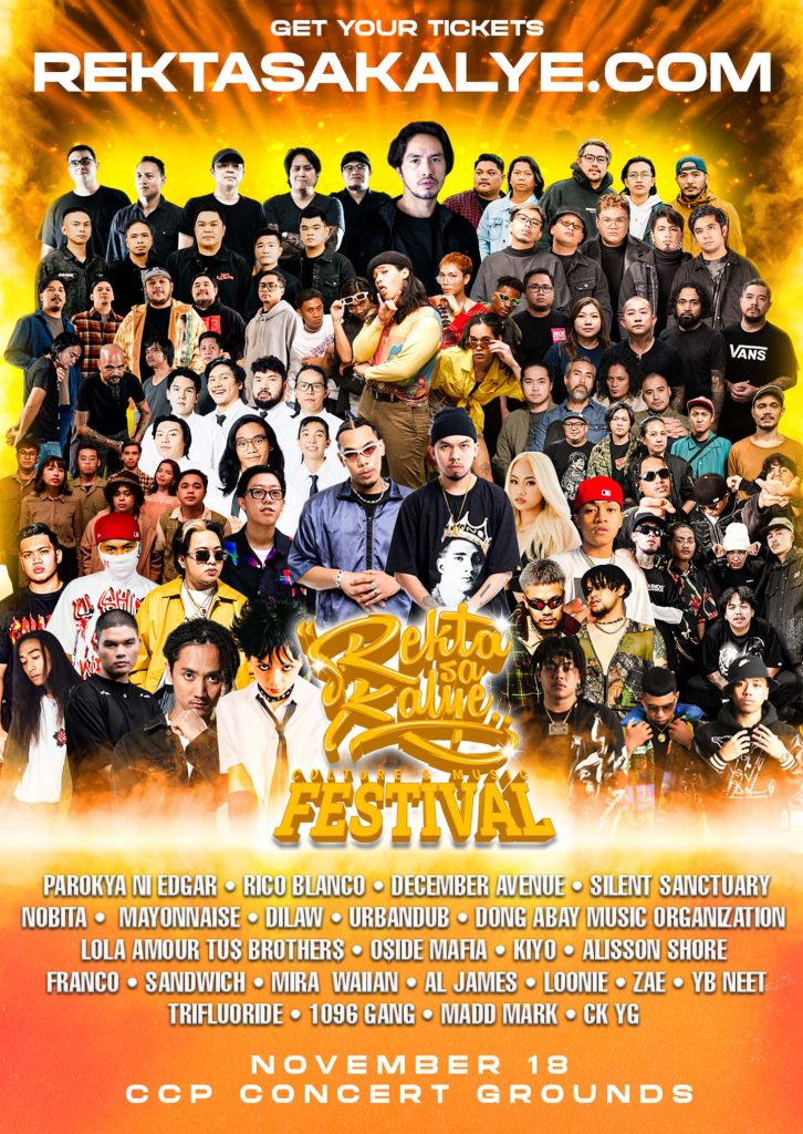 Apart from them, Rekta sa Kalye OGs Al James, Loonie, Just Hush, and Because will also bring on the hip-hop fever, along with underground performers Allison Shore, Waiian, 1096 Gang, O$ide Mafia, YB Neet, Tu$ Brother$, and CK YG, Zae, and Madd Mark.
