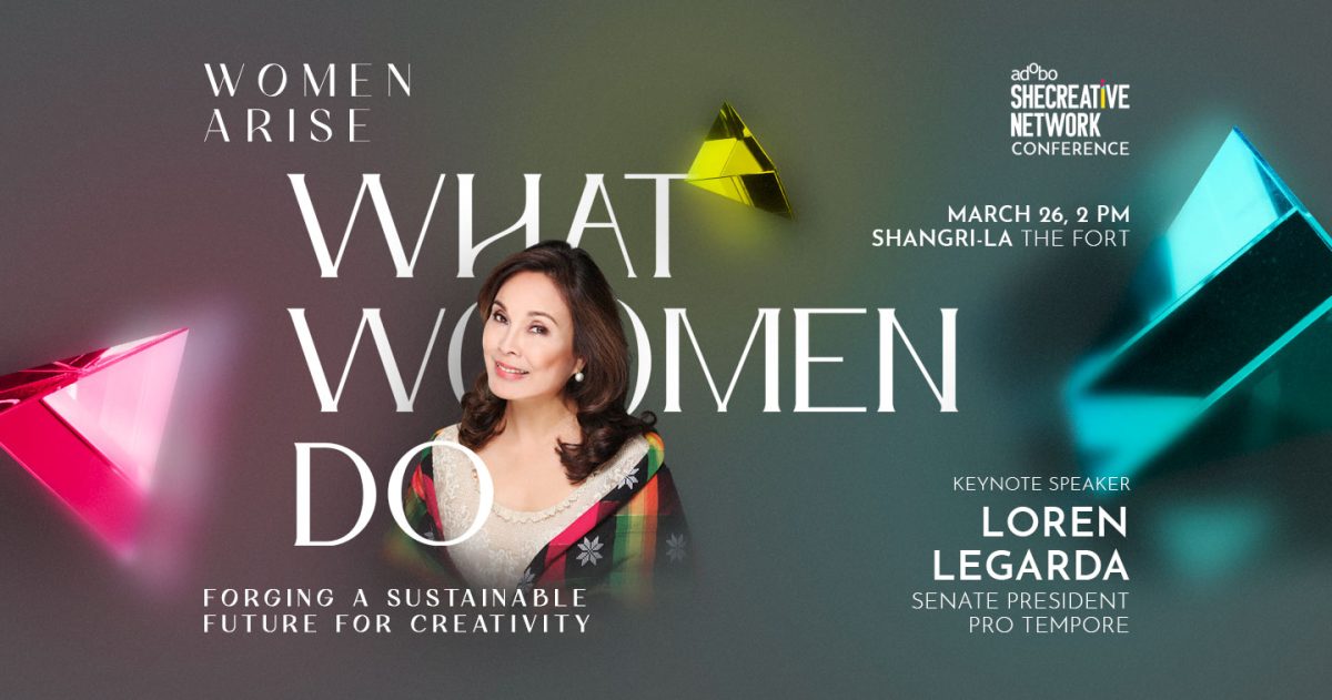 MANILA, PHILIPPINES — Senate President Pro Tempore Loren Legarda, a long-time advocate of Filipino arts and culture, will be delivering the keynote address at the adobo SheCreative Conference this March 26, 2024 at Shangri-La at the Fort. The good senator will be sharing her insights on the Philippines’ creative economy and its role in nation-building to kick off an afternoon filled with talks from equally inspiring women in creative fields. Her expertise on the matter, developed over more than two decades of experience in public service, make her an ideal match for this year’s conference theme: “Forging a Sustainable Future for Creativity.”